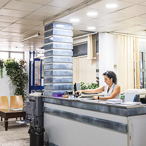 Recepción y zona de espera para clientes